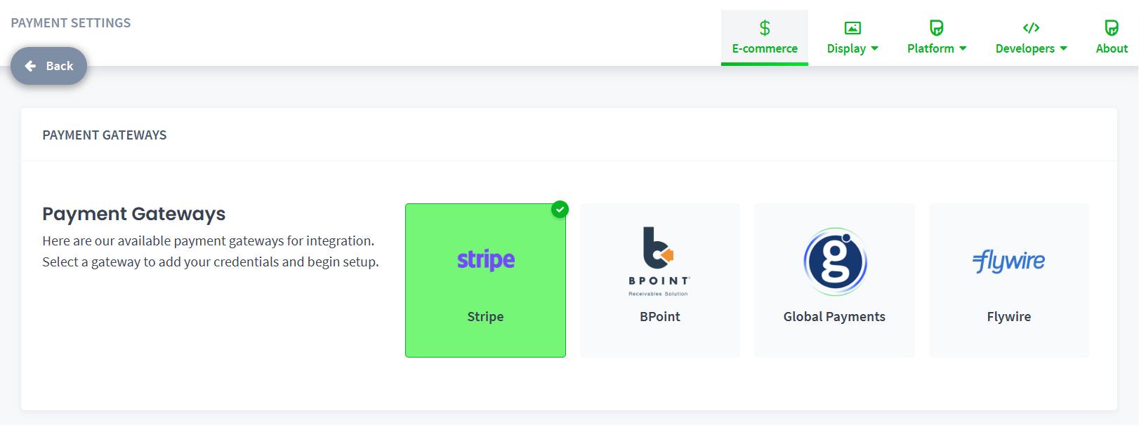 The PowerHouse platform features a range of payment gateways that have been integrated into the software. If you wish to sell your courses and/or registration in your face-to-face events and webinars, select your gateway and complete the configuration.