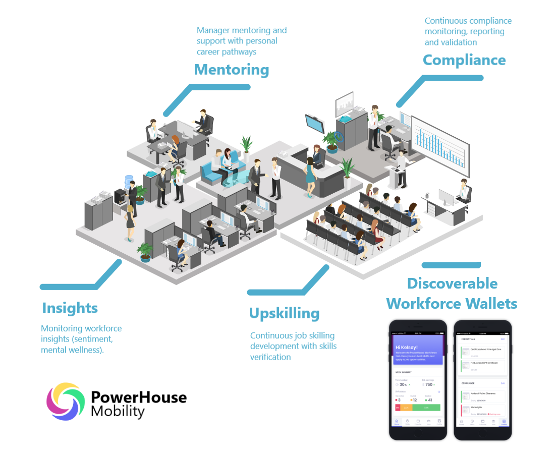 PowerHouse Mobility generates job role skills and compliance on your workforce and builds personal skill and compliance mapping for each employee. The ability to address gaps in these areas drives your workforce optimisation and business growth.